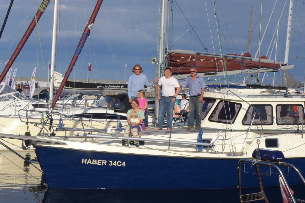 Pour traverser la Baltique, Janusz et moi-même sommes accompagnés d’un couple avec deux enfants. Ils possèdent un HABER 800C4 sur un lac en Autriche. Ils ont également l’expérience de voyages en mer. Il est prévu de naviguer la nuit. Nous nous organisons en quarts de 4 heures à une personne. La grande voile, le génois, le foc et les 4 dérives peuvent être contrôlés depuis le cockpit. Seuls l’utilisation du spi et des tangons nécessitent de travailler sur le pont avant. Dans ces cas, il est plus sûr de travailler à deux ou trois. Nous avons installé deux lignes de vie pour accéder au pont avant par gros temps ou de nuit.