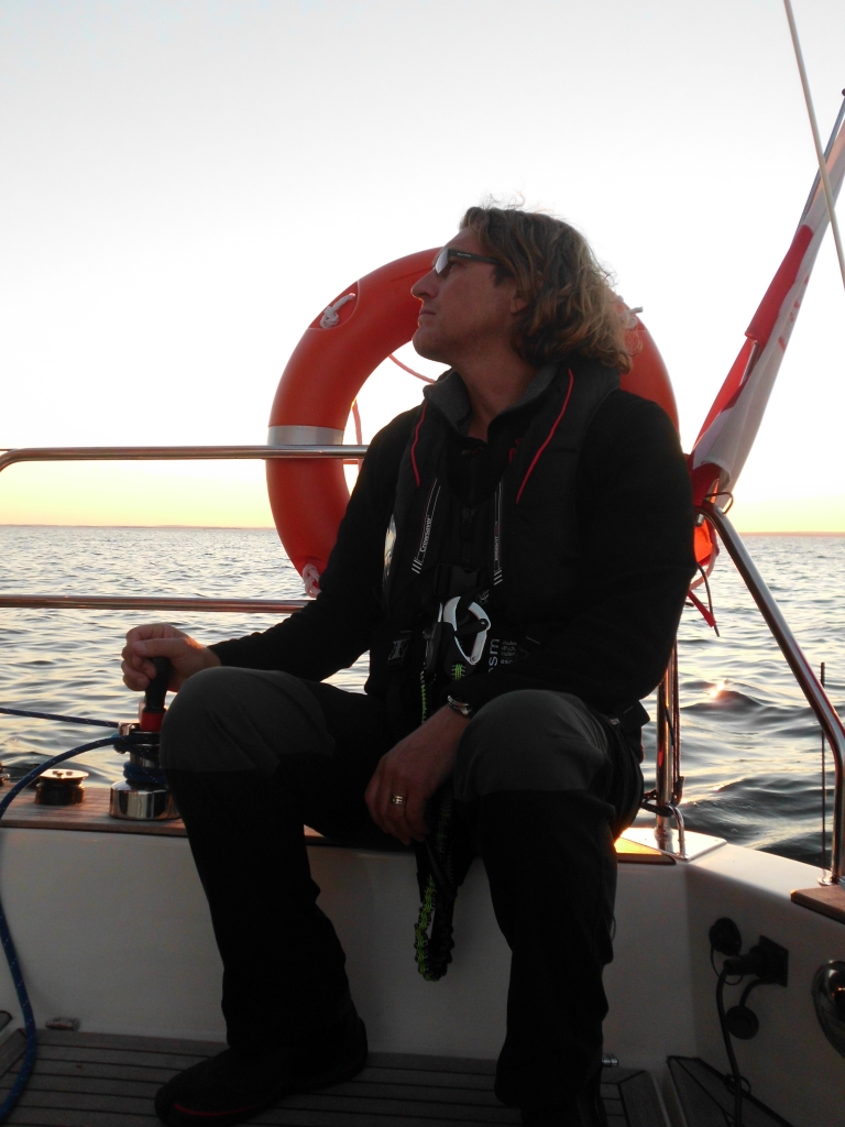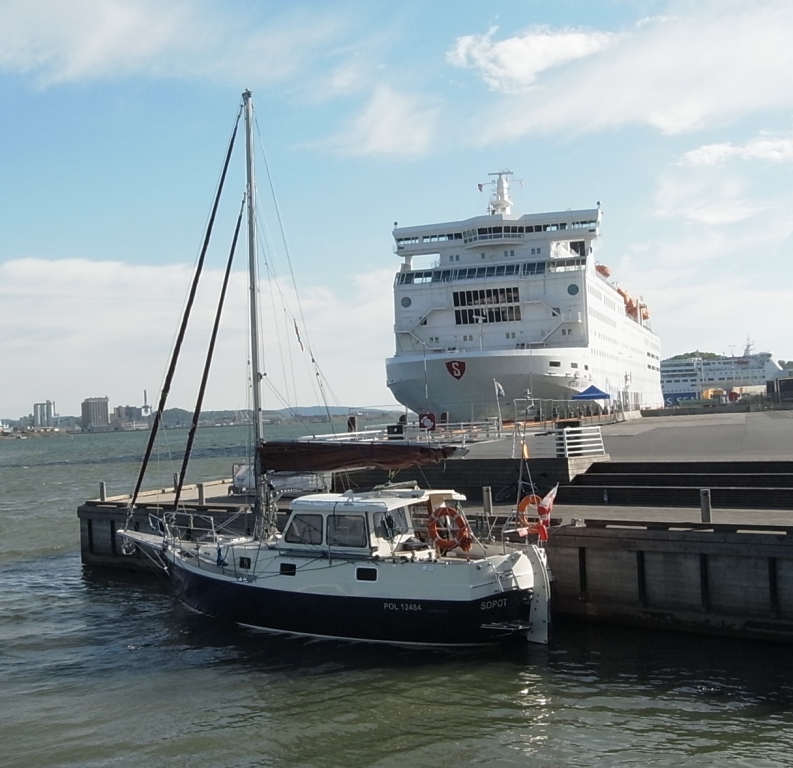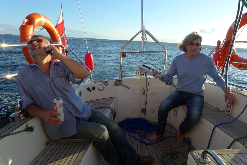 Le second jour, dans l’après-midi, le vent a repris de la vigueur. Nous prenons alors le large de la côte polonaise et mettons le cap sur le Sud-Ouest de la Suède. Nous passons notre seconde nuit de mer entre la Pologne et l’île Danoise de Bornholm avec un vent de 3 BF, forcissant progressivement durant la nuit à 5 BF, soufflant de travers par rapport à notre course. La mer s’est agitée. Les vagues présentent des creux d’environ 1.5 m. Le réglages des 4 dérives permet de naviguer à la voile sans autopilote. La course est très stable. L’équipier de quart peut sans aucun problème quitter le poste de barre pour consulter les cartes, remplir le journal de bord ou se préparer à manger. La course est très stable et le comportement sous les vagues et les coups de vent est très sein. Le cockpit et le salon de pont offrent un abri confortable à l’équipier de quart. Les coéquipiers peuvent dormir en toute tranquillité au fond du bateau.