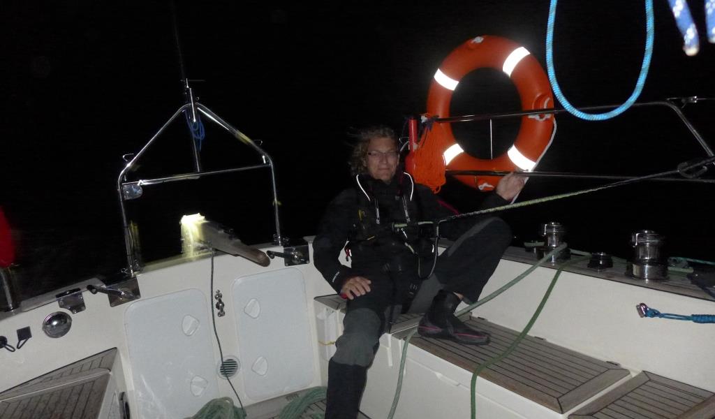 Nous avons choisi de partir au crépuscule, après la fermeture du salon nautique. Le secteur nous est déjà un peu familier après les sorties test du week-end. Nous choisissons un itinéraire bien balisé pour sortir au moteur de l’archipel d’Orust. La nuit tombe vite. Il nous faut un peu plus d’une heure pour nous retrouver au large, sous voiles, au grand largue par 3 BF de vent. La nuit s’annonce tranquille et plaisante.