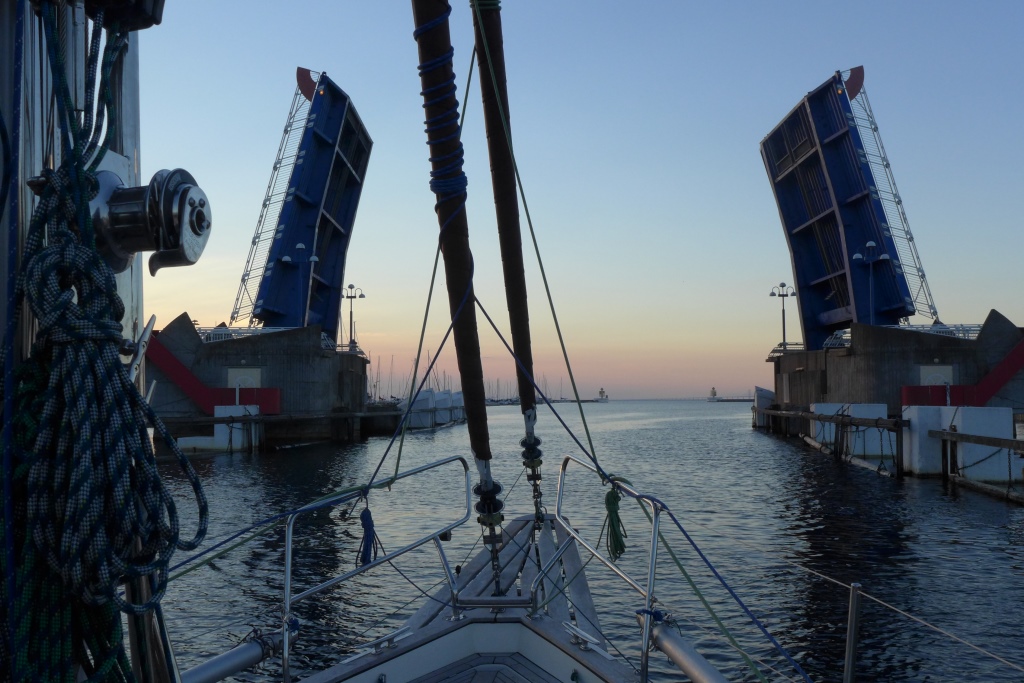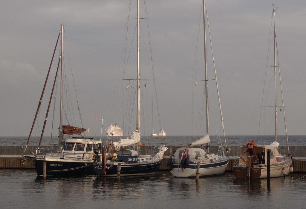 Nous croisons au large de l’île danoise de Bornholm au petit matin, le troisième jour. Nous atteignons la côte suédoise en fin d’après-midi, puis nous empruntons le canal de Falsterbo au crépuscule. Celui-ci nous permet de couper l’extrême Ouest de la Suède et de s’épargner quelques miles pour accéder au détroit de l’Øresund. Nous passons notre troisième nuit à quai dans une marina au droit de l’accès Nord de ce canal. C’est l’occasion de recharger nos batteries, de refaire le plein des réservoirs d’eau et de prendre une douche.
