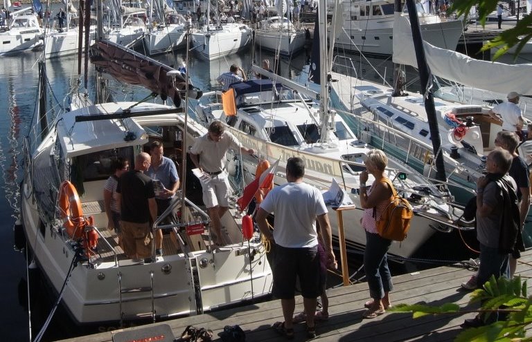 Le salon nautique à flot « Öppna Varv » est coorganisé par le chantier naval Hallberg-Rassy. Ce dernier met à disposition sa marina et offre une assistance technique aux organisateurs. Le beau temps est au rendez-vous et le cadre est magnifique. La plupart des bateaux exposés arrivent par la mer.