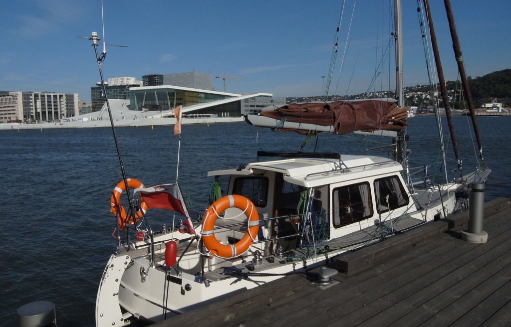 Arrivés à Oslo, nous devons déclarer le bateau aux douanes. Bien qu’il soit correctement enregistré pour la plaisance sous pavillon polonais, il va être présenté à un salon nautique … . Ça n’est alors pas simple. Entre pays membres de la CEE (c’est le cas de la Pologne et de la Suède) et pays européens non membres de la CEE mais « amis » (c’est le cas de la Norvège et de la Suisse) il faut pratiquement 4 ans d’études de doits dans 4 pays différents pour y comprendre quelque chose. A la moindre petite erreur, les administrations se font un plaisir de mettre à l’amende.