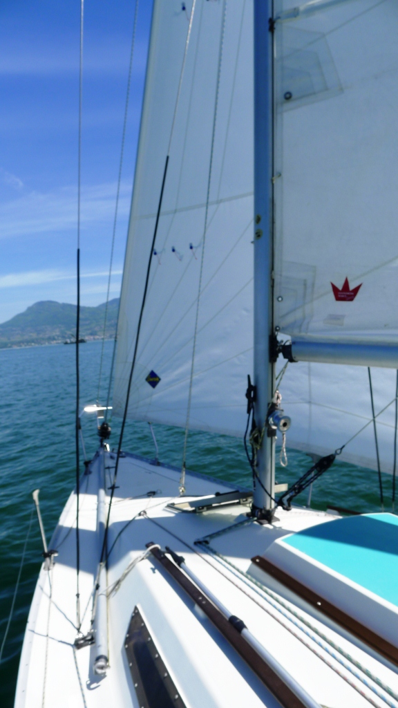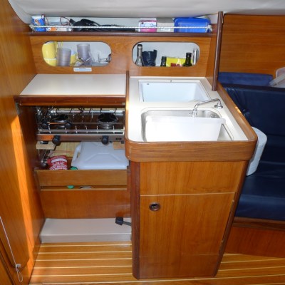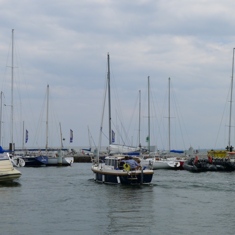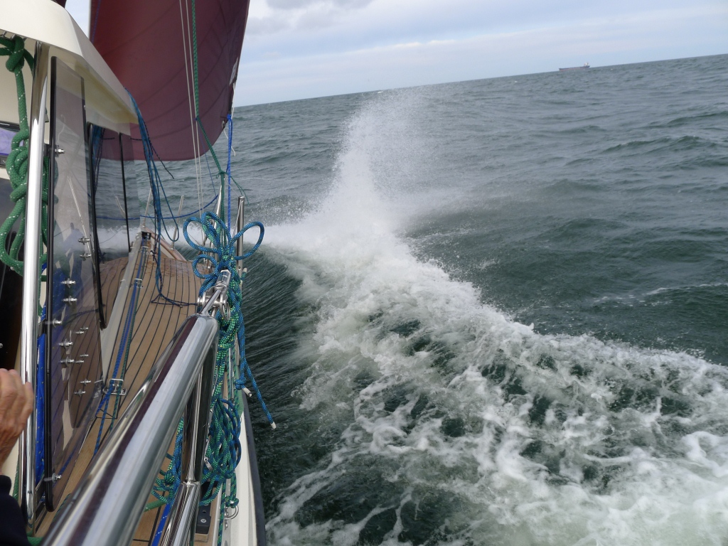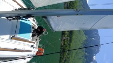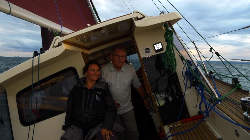 La visite nous a permis de vérifier le soin apporté à la réalisation de notre projet. La coque est terminée. Son fond quasi plat et les quatre plans antidérive entièrement rétractables classeront le HABER 34C4 dans la catégorie des dériveurs intégraux. Sa stabilité sera assurée par le lestage du fond de la coque et sa forme dans son ensemble. Le roof, en salon de pont, permettra au voilier de revenir sans assistance dans sa position normale, même après avoir été retourné fond sur fond par un rouleau mal négocié. Bon … pour notre part, on ne cherchera pas à le vérifier. Nous nous réjouissons plutôt de nous faufiler dans les passages à faible tirant d’eau et d’approcher les plages au plus près.