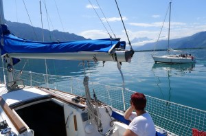 Il a fallu tout de même près de 6 heures pour remonter le gréement, qui avait été complètement défait pour faciliter le transport et protéger les pièces les plus sensibles. Ça été l’occasion de refaire l’exercice du basculement du mât sans l’aide d’une grue. Le bateau est spécialement conçu pour cette opération, afin de permettre de remonter les canaux sans une fastidieuse planification des opérations de dépose du mât. Notre bateau a été contrôlé par le service de la navigation le vendredi 31 janvier 2014, puis a été déplacé au Bouveret, son port d’attache.